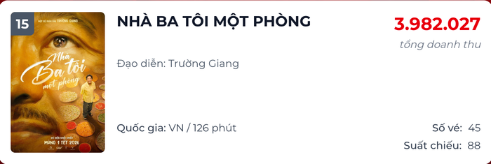 Bộ phim Nhà Ba Tôi Một Phòng do Trường Giang đạo diễn hiện đang dần tụt hàng trên đường đua phòng vé.