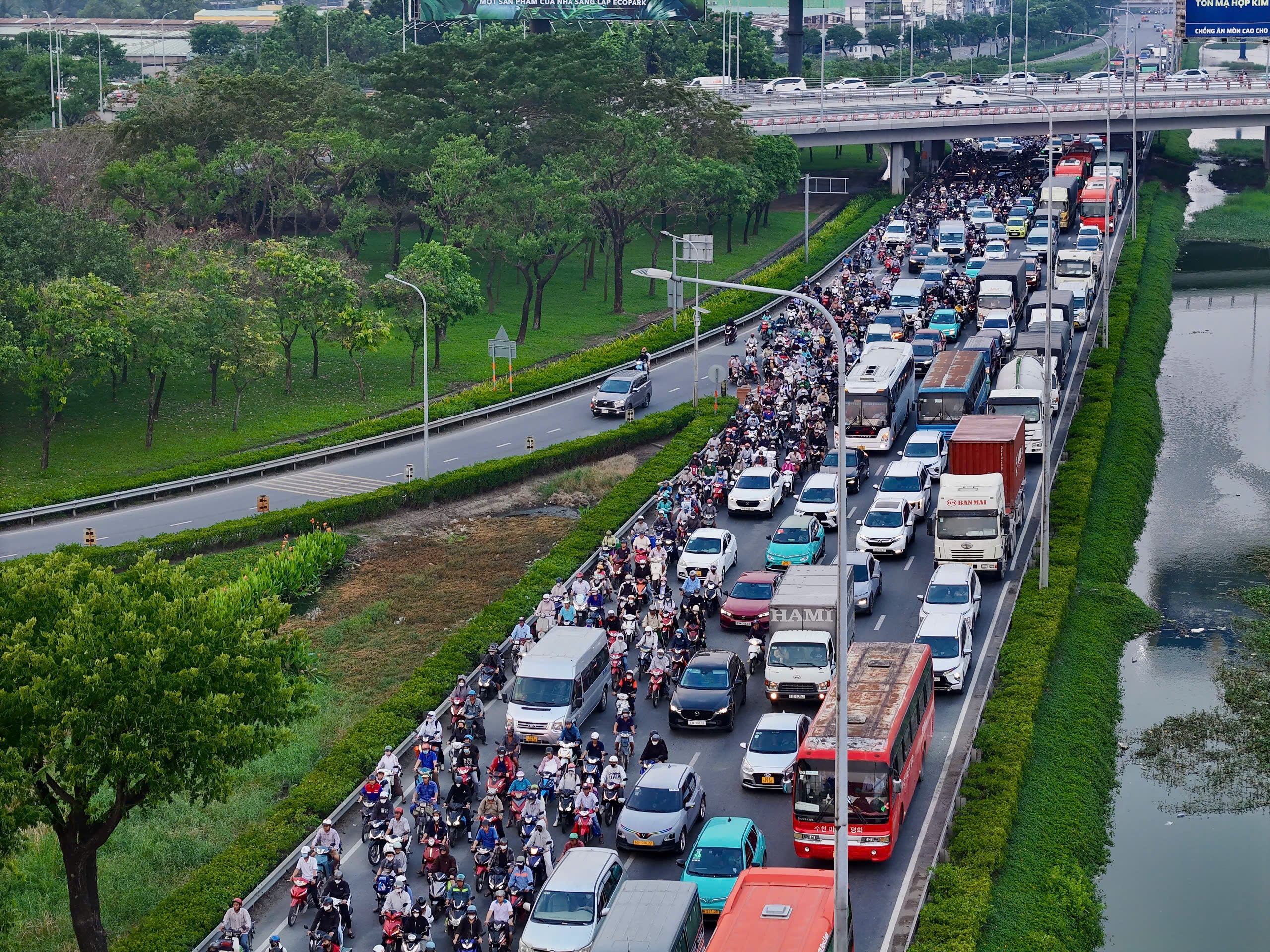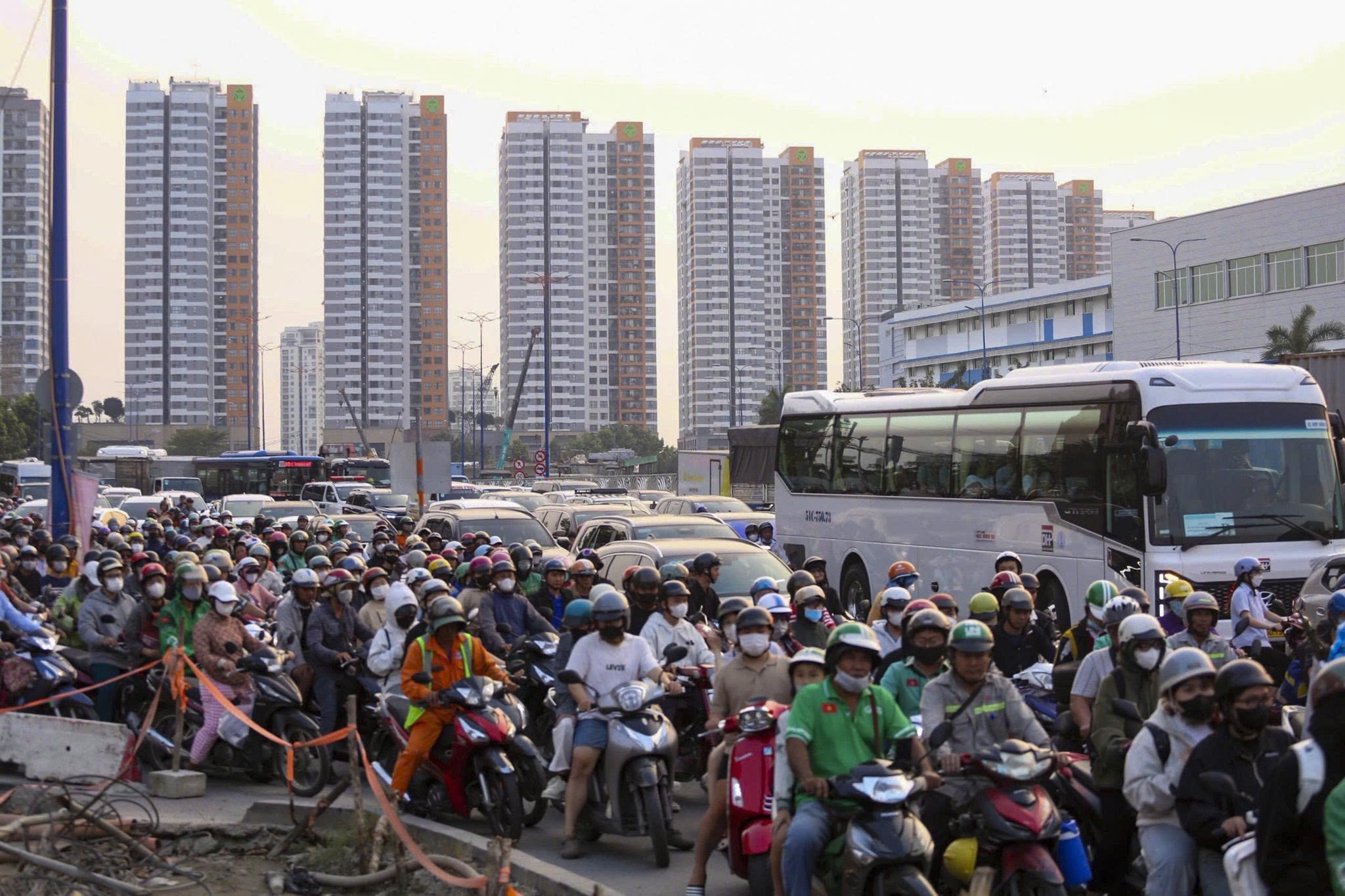 Còn ở các tuyến đường nối về trung tâm TP, các khu vực như công viên bến Bạch Đằng, phố đi bộ Nguyễn Huệ, giao thông cũng ùn ứ nặng từ khoảng 17-18h.
