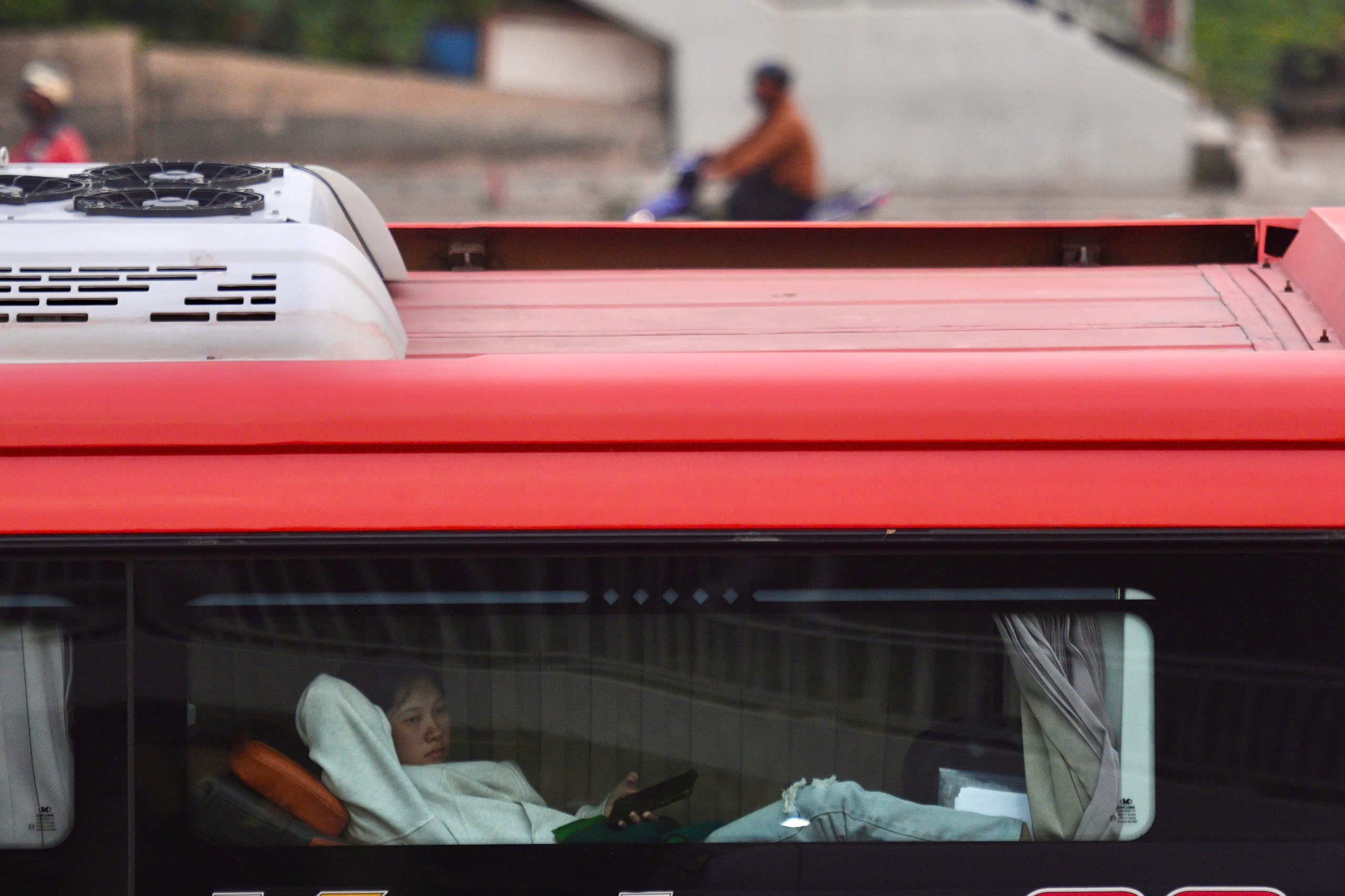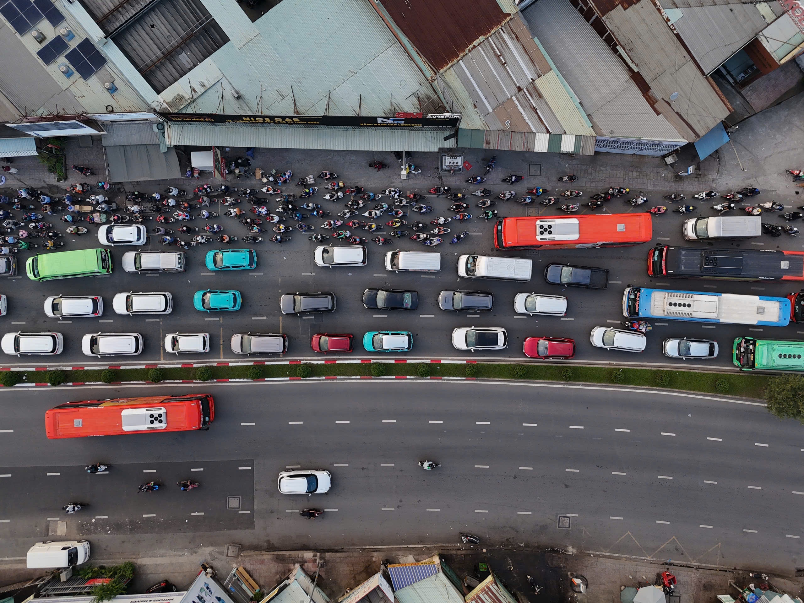 Nhiều xe giường nằm từ TP.HCM xuất phát từ về các tỉnh miền Tây lúc 16-18h gặp tình trạng kẹt xe trên QL1A.