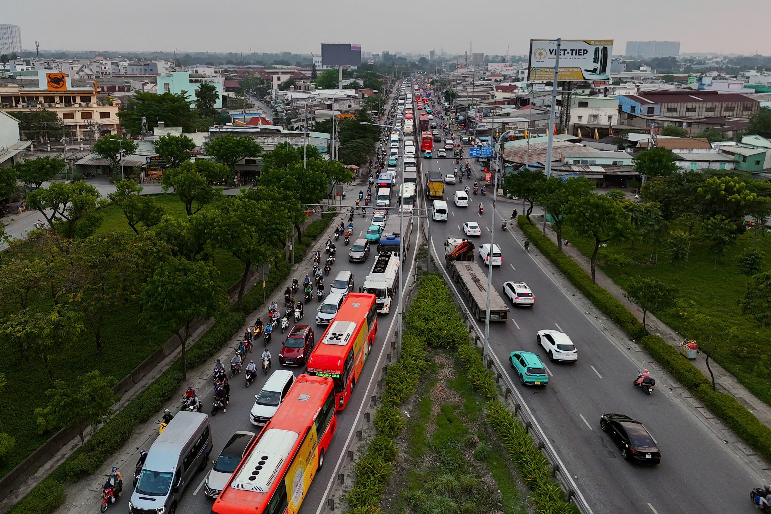 17h, tại cửa ngõ phía Đông TP.HCM, khu vực nút giao An Phú (phường Bình Trưng, TP. Thủ Đức cũ) bắt đầu ghi nhận tình trạng giao thông căng thẳng. Lượng xe từ nhiều hướng đổ dồn về đây, đặc biệt là các phương tiện di chuyển theo hướng từ Mai Chí Thọ đi Đồng Nai.