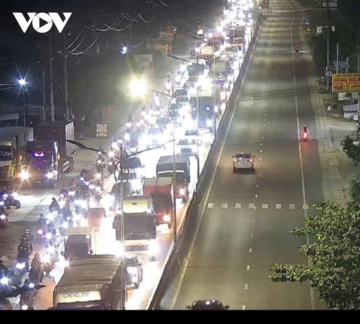 Trên quốc lộ 1 hướng Miền Tây - TP.HCM tối nay mật độ phương tiện vẫn ở mức cao