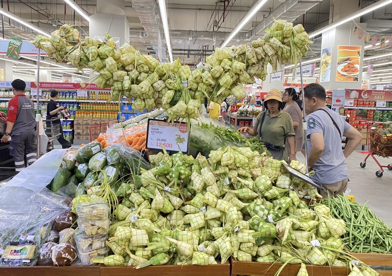 Trong dịp lễ Idul Fitri, vỏ ketupat cũng được bày bán nhiều tại siêu thị. Ảnh: Đỗ Quyên/PV TTXVN tại Indonesia