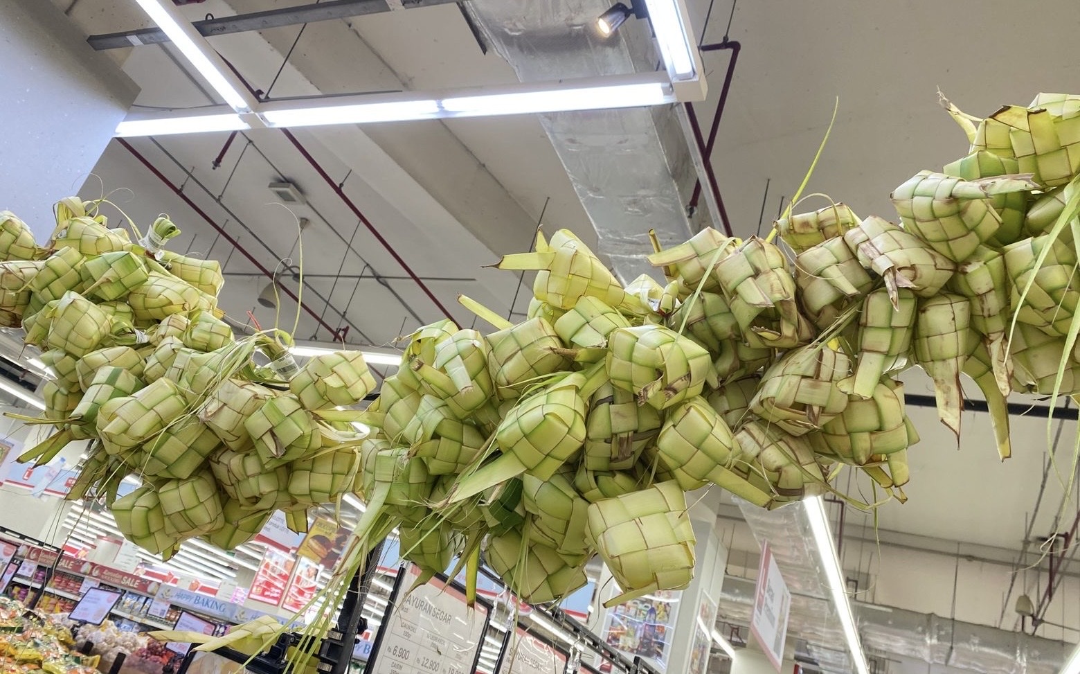 Trong dịp lễ Idul Fitri, vỏ ketupat được bày bán nhiều tại siêu thị. Ảnh: Đỗ Quyên/PV TTXVN tại Indonesia