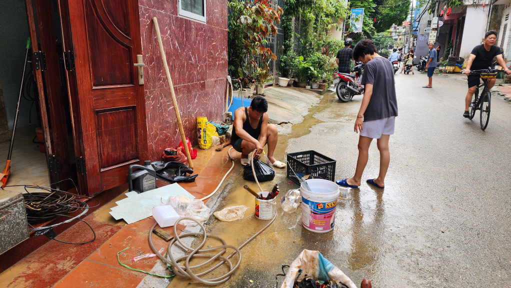 Nhu cầu sử dụng nước của người dân tăng do dọn, rửa vệ sinh đồ đạc nhà cửa sau khi nước lũ rút.