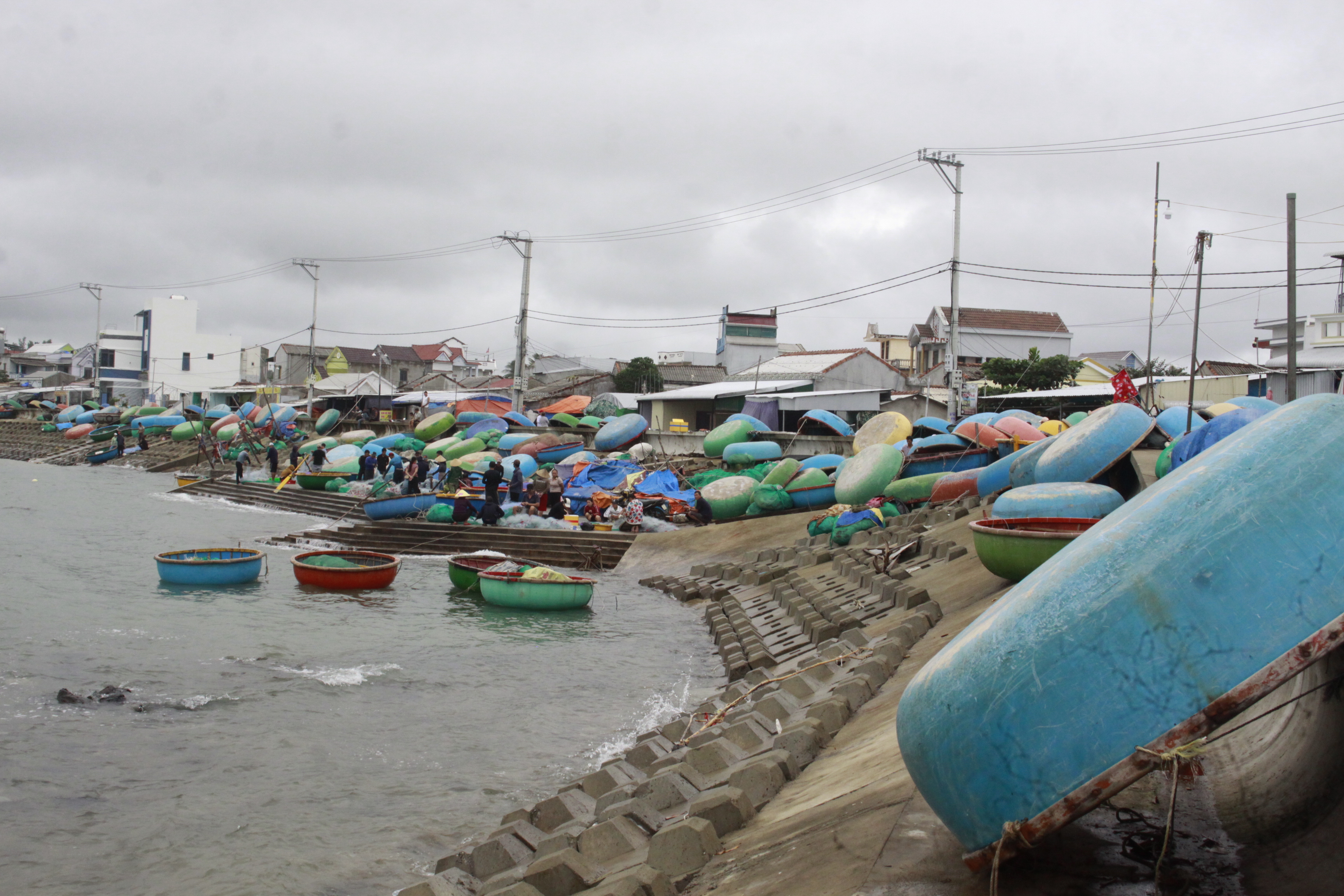 Tàu thuyền vào nơi neo đậu cảng Tịnh Hòa, xã Đông Sơn, tỉnh Quảng Ngãi vào sáng ngày 21-10. Ảnh: NGUYỄN TRANG