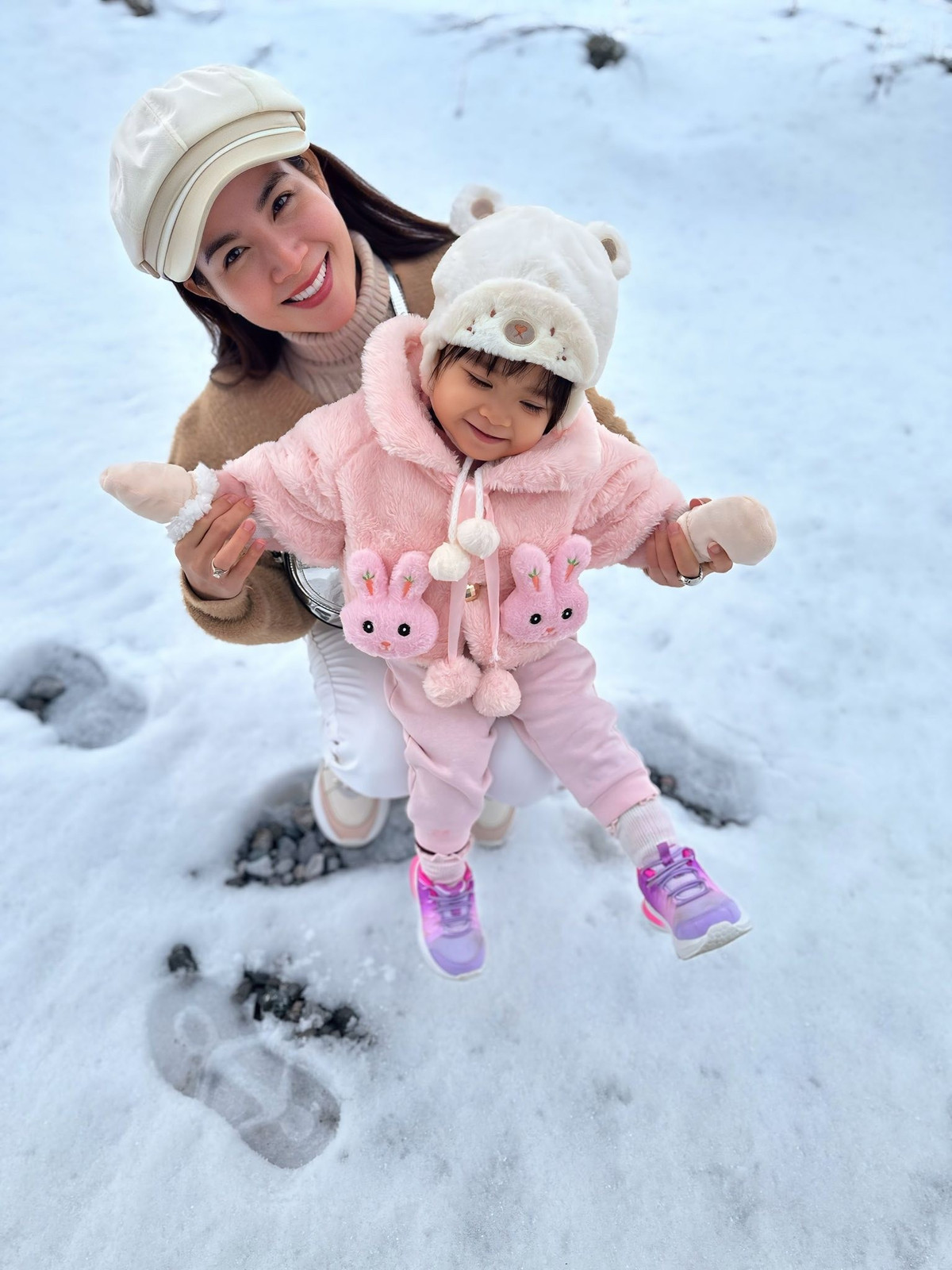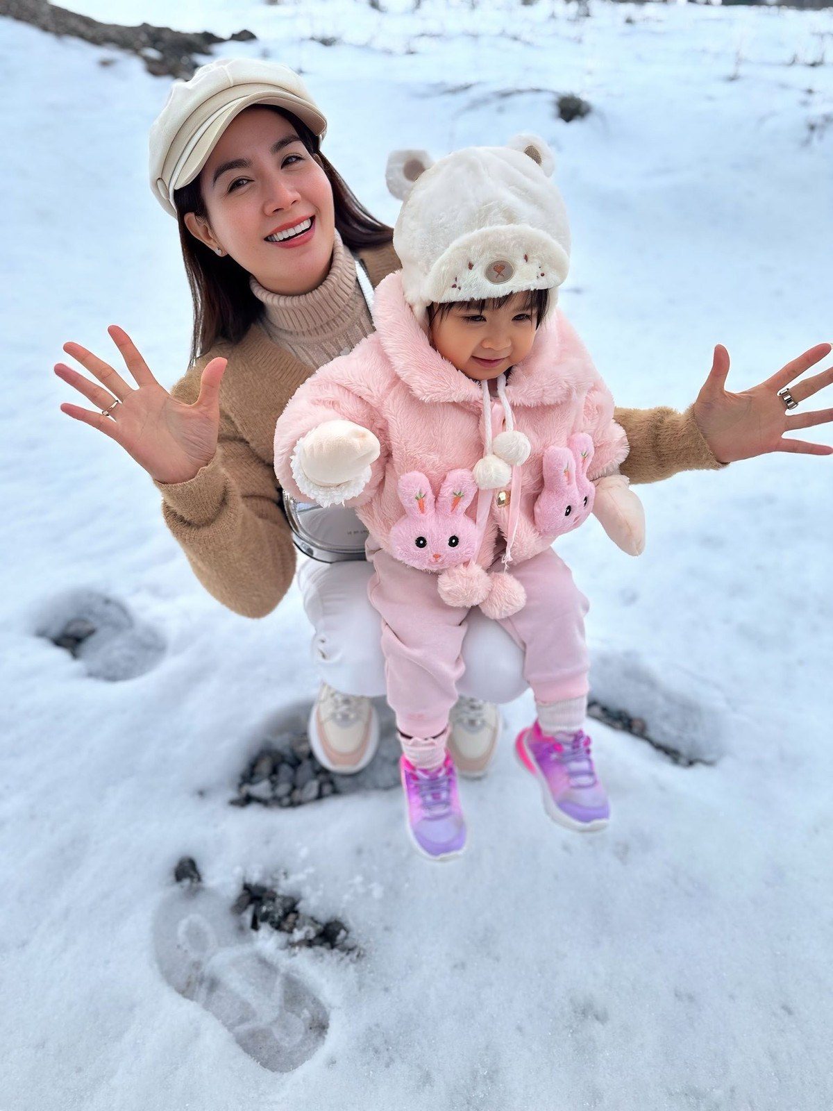 Nữ diễn viên cũng tiết lộ chuyến đi lần này có sự đồng hành của bố mẹ ruột. Đây là lần đầu tiên ông bà được tận mắt ngắm tuyết rơi nên vô cùng hào hứng.