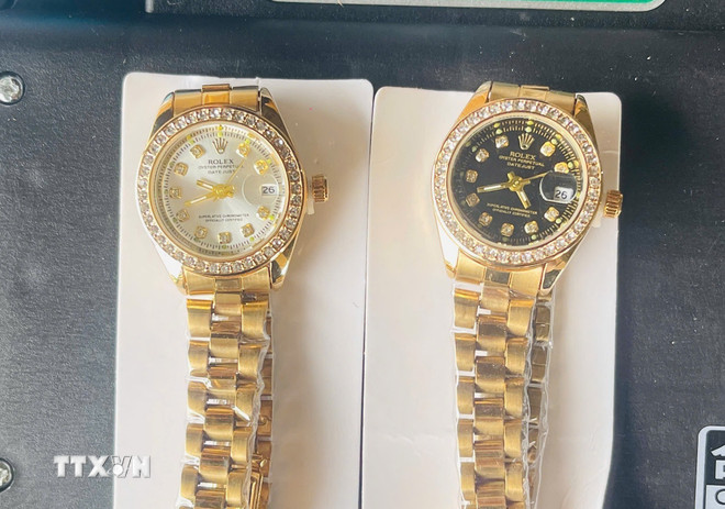 Đồng hồ đeo tay giả nhãn hiệu Rolex bị lực lượng chức năng thu giữ. (Ảnh: TTXVN phát)
