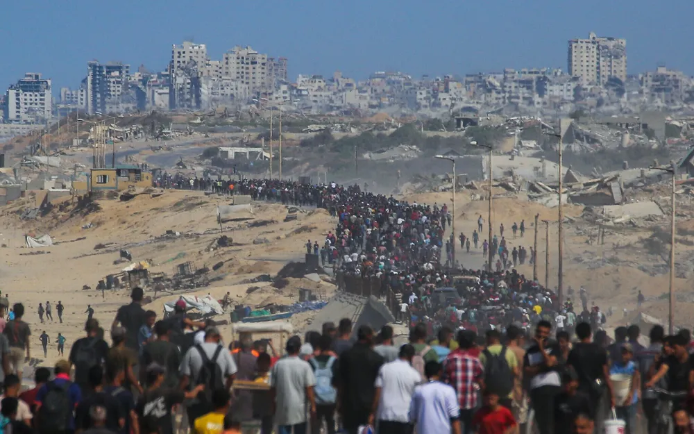 Người dân trên đường đi về TP Gaza (bắc Gaza) vào ngày 10-10. Bashar Taleb/AFP