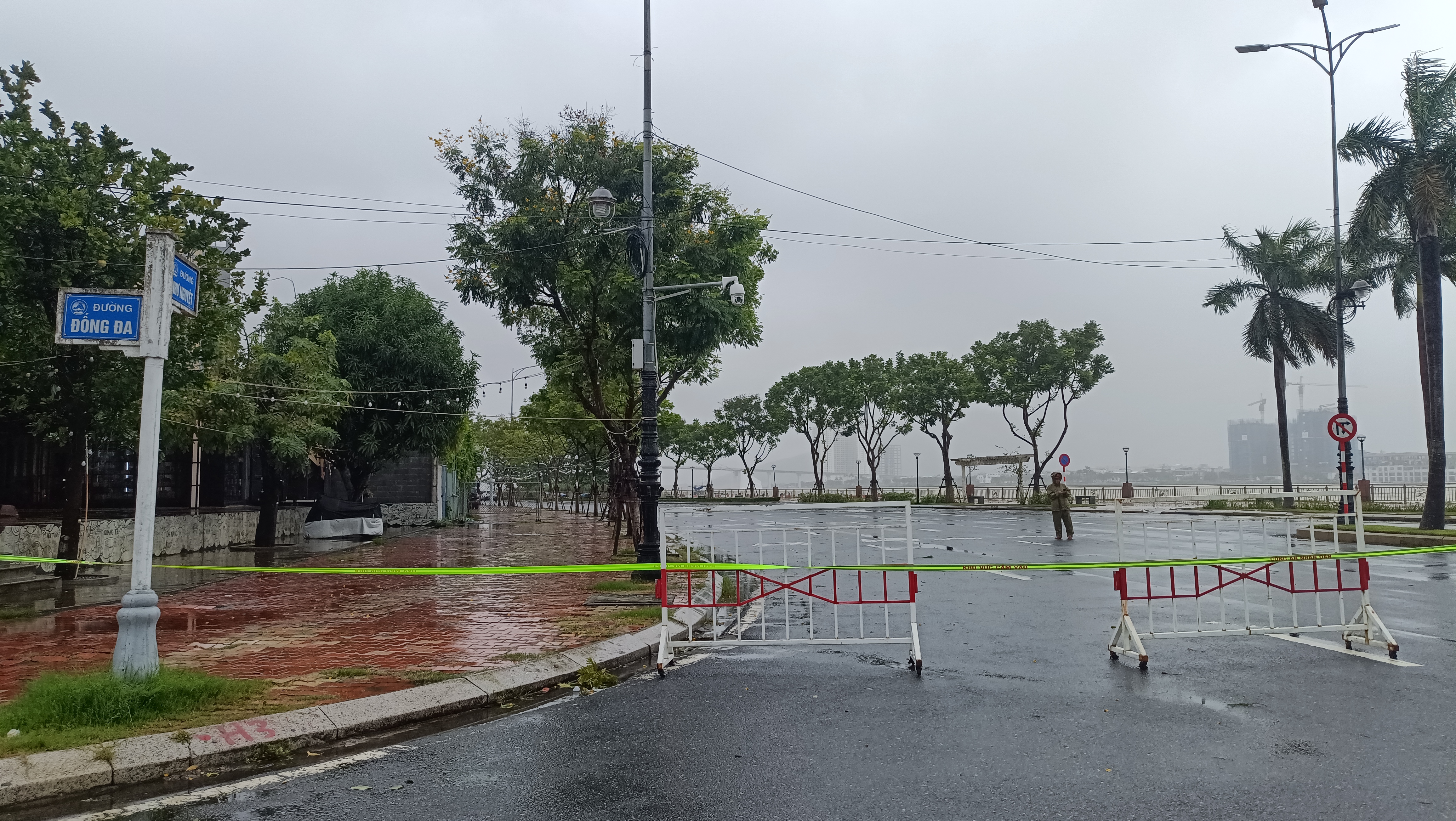 Lực lượng chức năng rào chắn khu vực đường Như Nguyệt (phường Hải Châu, TP Đà Nẵng). Ảnh: XUÂN QUỲNH