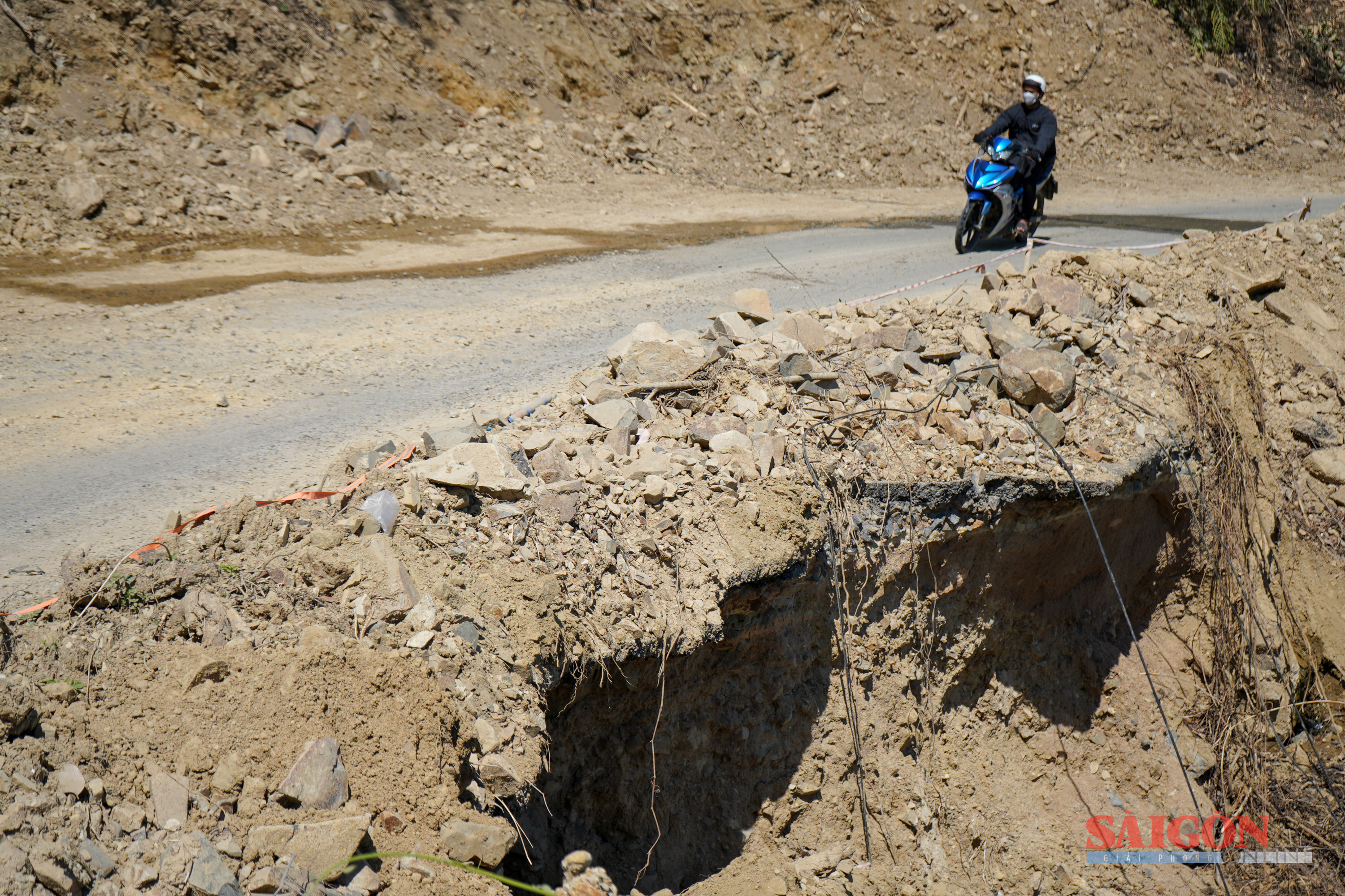 Cận cảnh các điểm sạt lở nghiêm trọng trên đèo Khánh Sơn. Thực hiện: HIẾU GIANG