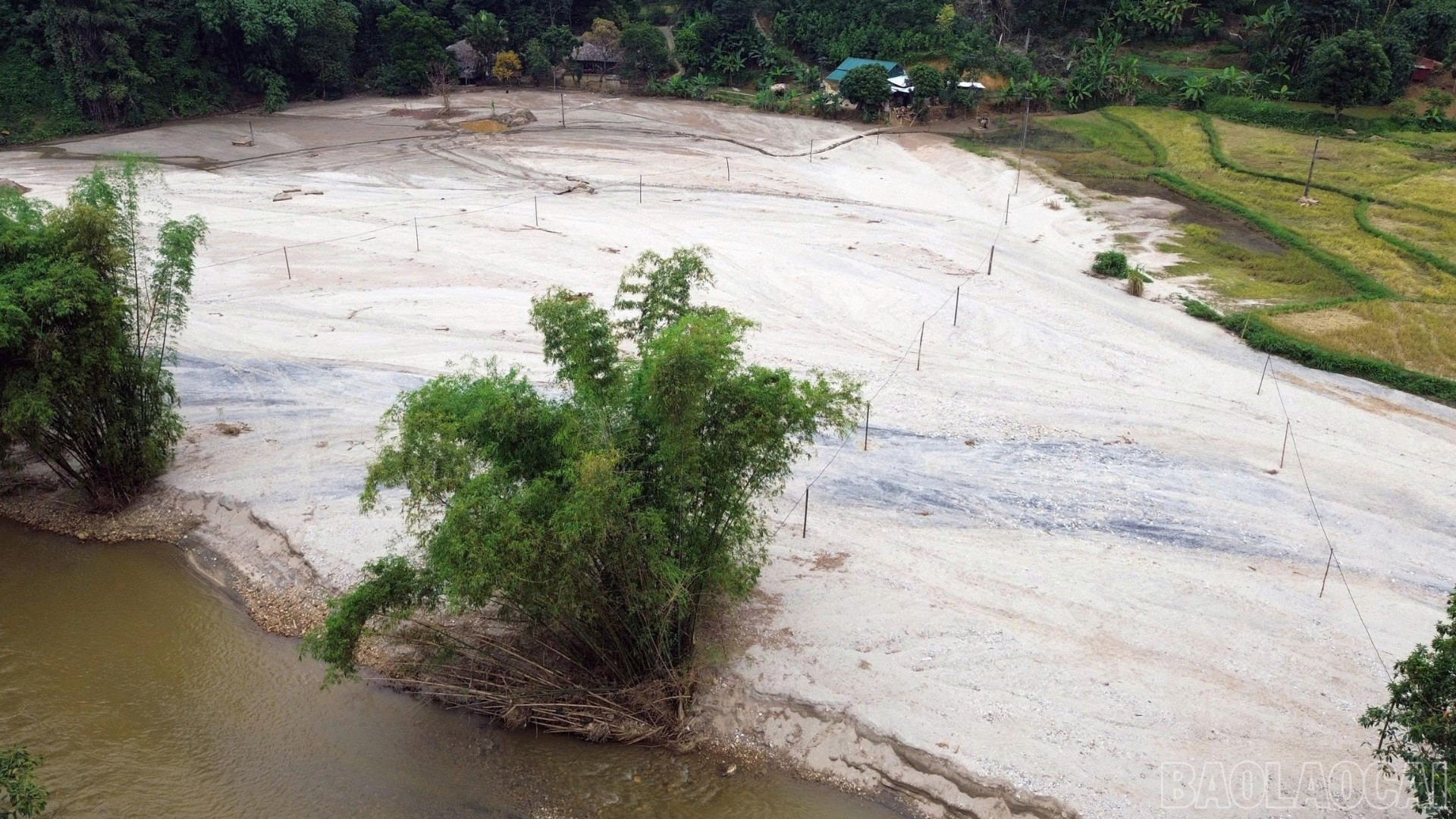 Trận lũ lịch sử cuối tháng 9 đã khiến hàng trăm nghìn m3 đất và cát từ thượng nguồn tràn về vùi lấp 3,5 ha ruộng, vườn của người dân thôn Làng Chút, xã Văn Bàn. Chỉ tay về những thửa ruộng ven suối Chút, bà Nguyễn Thị Phượng, chia sẻ: "Bãi cát lớn ven suối kia trước đây là cánh đồng hai vụ của người dân trong thôn. Khi lúa đã chắc hạt, tưởng năm nay được mùa nào ngờ chỉ trong 1 đêm lũ đã tàn phá hoàn toàn. Không chỉ vậy, tất cả chuồng trại, vườn cây ăn quả cũng bị lũ mang đất cát về vùi lấp. Ngay sau lũ rút, mặc dù người dân địa phương đã cố gắng khắc phục, nhưng với khối lượng đất, cát sỏi vùi lấp rất lớn, nên sau gần 1 tháng làng mạc, đồng ruộng vẫn bị cát phủ không thể trồng cấy".