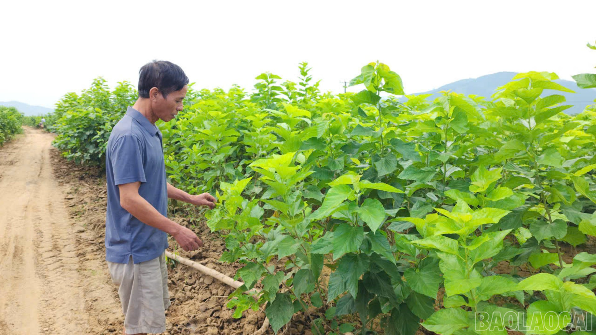 Cánh đồng dâu tằm ở Mậu A đang dần hồi phục sau mưa lũ.