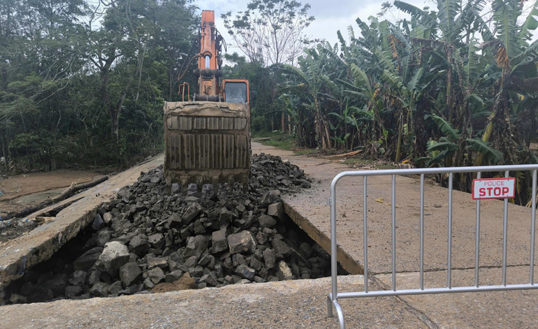 Cụ thể, tại Km 1+588 Tỉnh lộ 587, mặt đường bê-tông bị nước lũ xói gây sạt ta luy âm, hở hàm ếch. Tại Km 6+300 bị xói lở, sạt ta-luy âm tạo thành hố sâu 3 đến 5m, kéo dài hơn 20m, mặt đường hiện tại chỉ còn khoảng 1m.