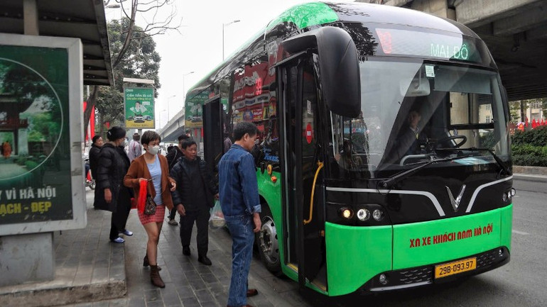 Thành phố Hà Nội đang phát triển mạnh giao thông công cộng và thúc đẩy chuyển đổi từ phương tiện sử dụng nhiên liệu hóa thạch sang phương tiện xanh. (Ảnh HOÀNG ANH)