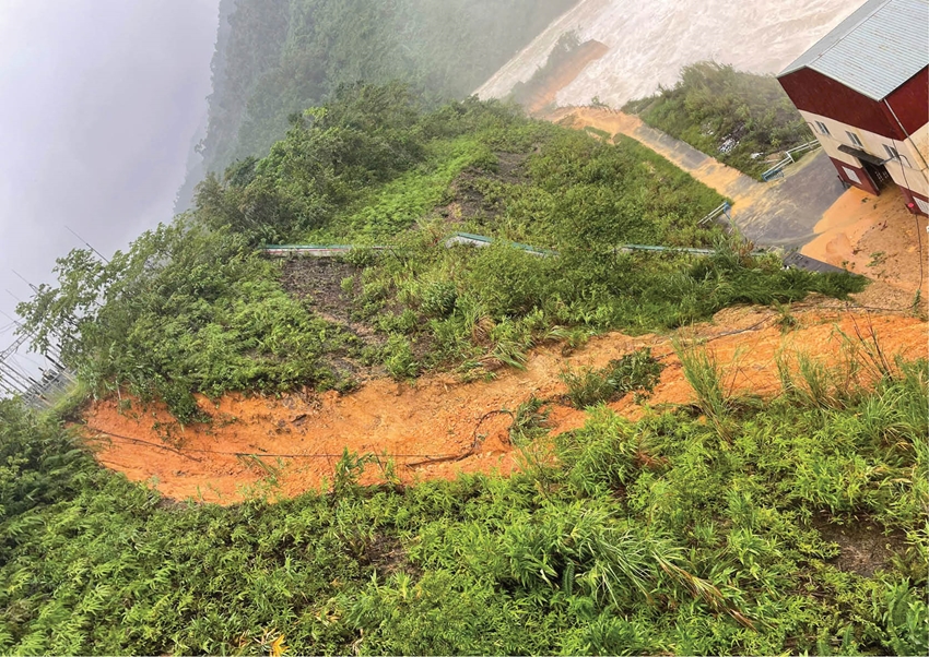 Điểm sạt lở taluy dương tại Nhà máy Thủy điện Rào Trăng 4. Ảnh: Bảo Trung