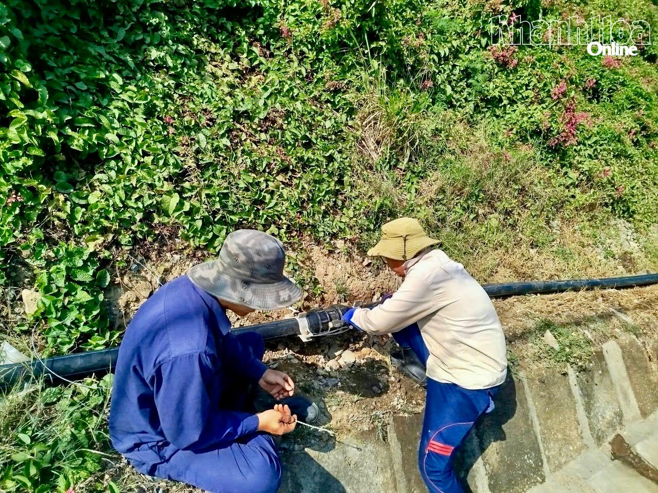 Công nhân khắc phục sự cố đường ống bị bung mối.