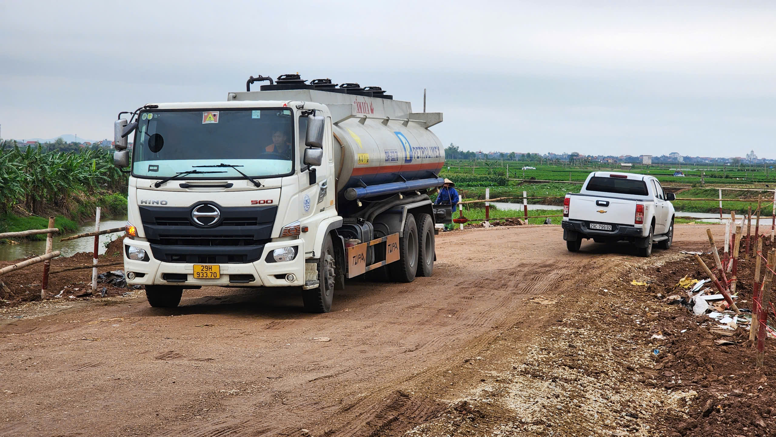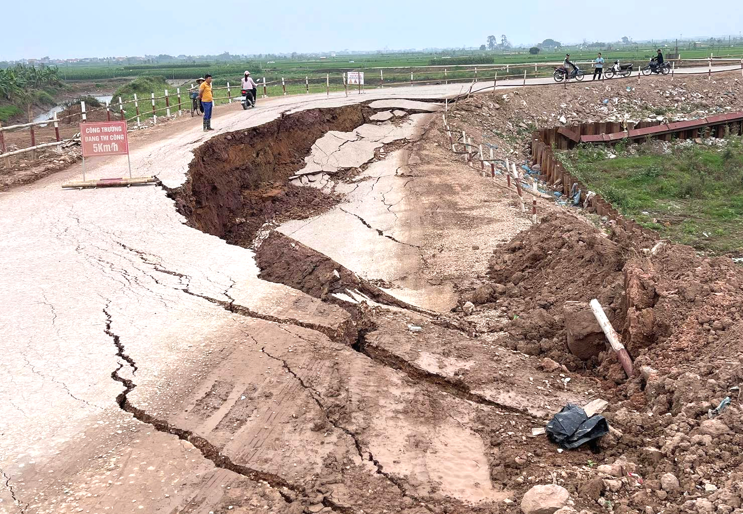 "Sự việc diễn ra khoảng 16h ngày 27/2, quá trình thi công móng cống tự chảy đã làm đê quai (đường tránh) sạt lở khoảng hơn chục mét. Sự cố đã khiến phương tiện lưu thông trên đê Văn Thai (từ xã Trung Chính, Bắc Ninh đi Hải Phòng) bị chia cắt", ông Tuyến nói.