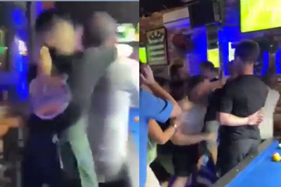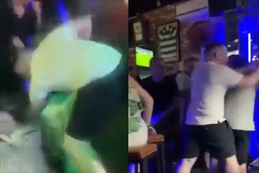 Những hình ảnh được lan truyền trên mạng xã hội cho thấy ảnh tượng hỗn loạn diễn ra như một “trận chiến” bàn ghế bị lật tung, ly thủy tinh vỡ nát, và hàng chục người lao vào can ngăn. Đáng chú ý, một đoạn clip khác cho thấy người đàn ông ném máy quẹt thẻ đã túm cổ một phụ nữ từ phía sau, kéo ngã cô xuống đất và liên tục tấn công.