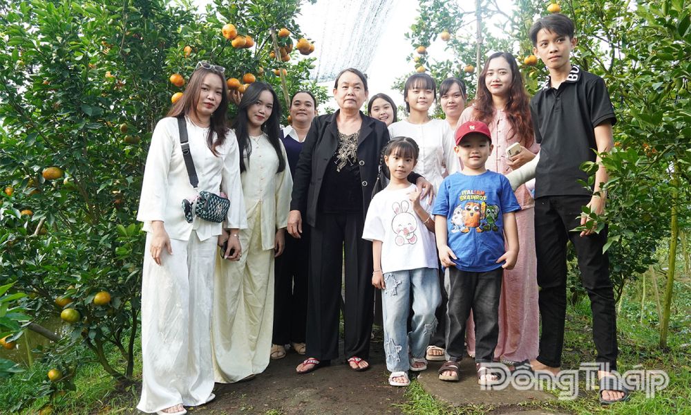 Điểm tham quan vườn quýt hồng Lan Anh (xã Hòa Long) thu hút đông đảo du khách.