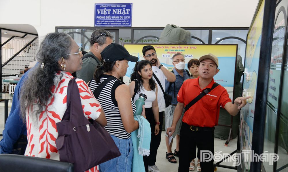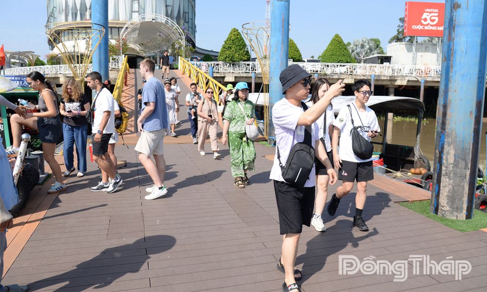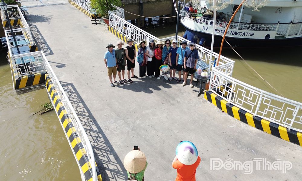 Du khách check in tại Cảng Du thuyền Mỹ Tho - Điểm du lịch tiêu biểu Đồng bằng sông Cửu Long.