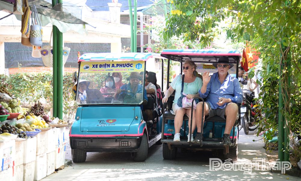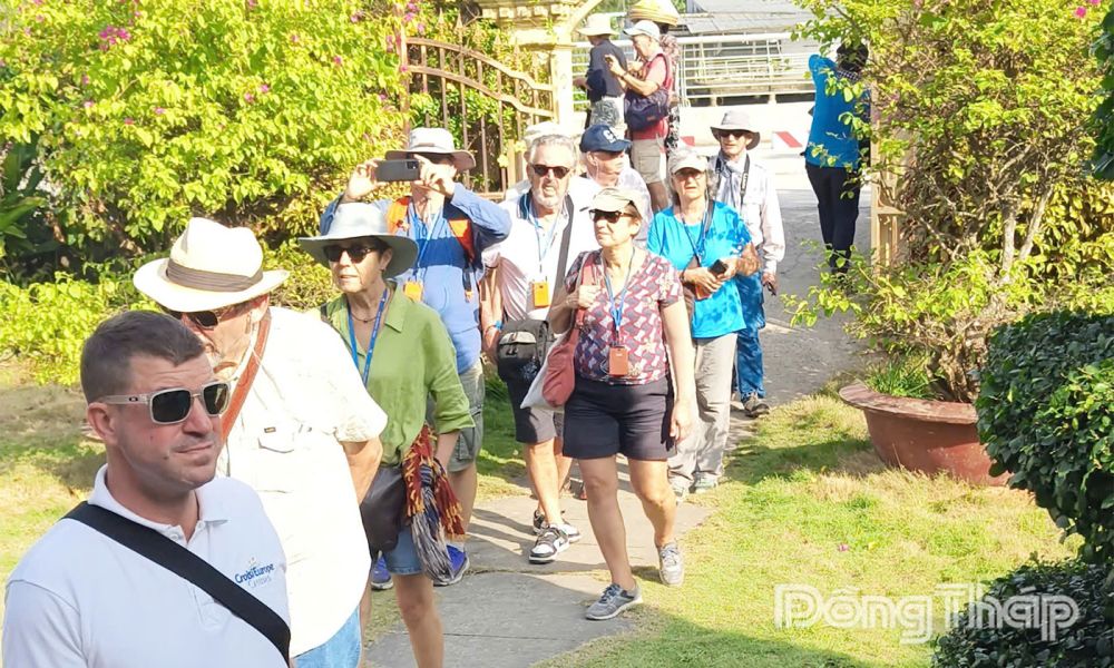 Khách quốc tế đến du lịch tại cù lao Thới Sơn trong sáng 2-1.