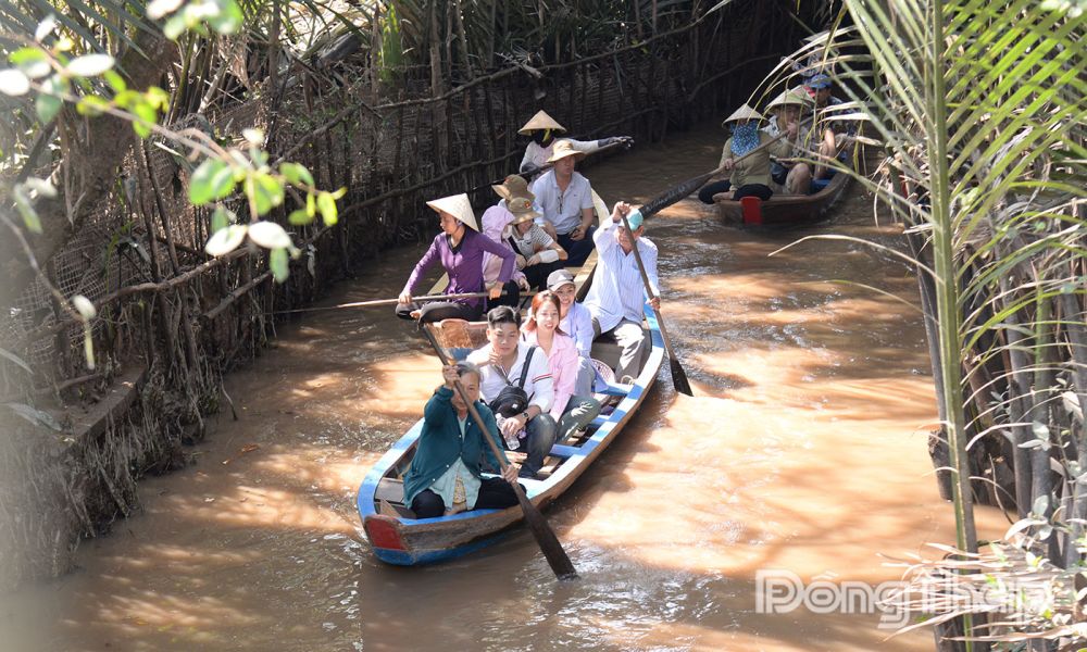 Trong ngày 2-1, có rất đông du khách đến tham quan cù lao Thới Sơn.
