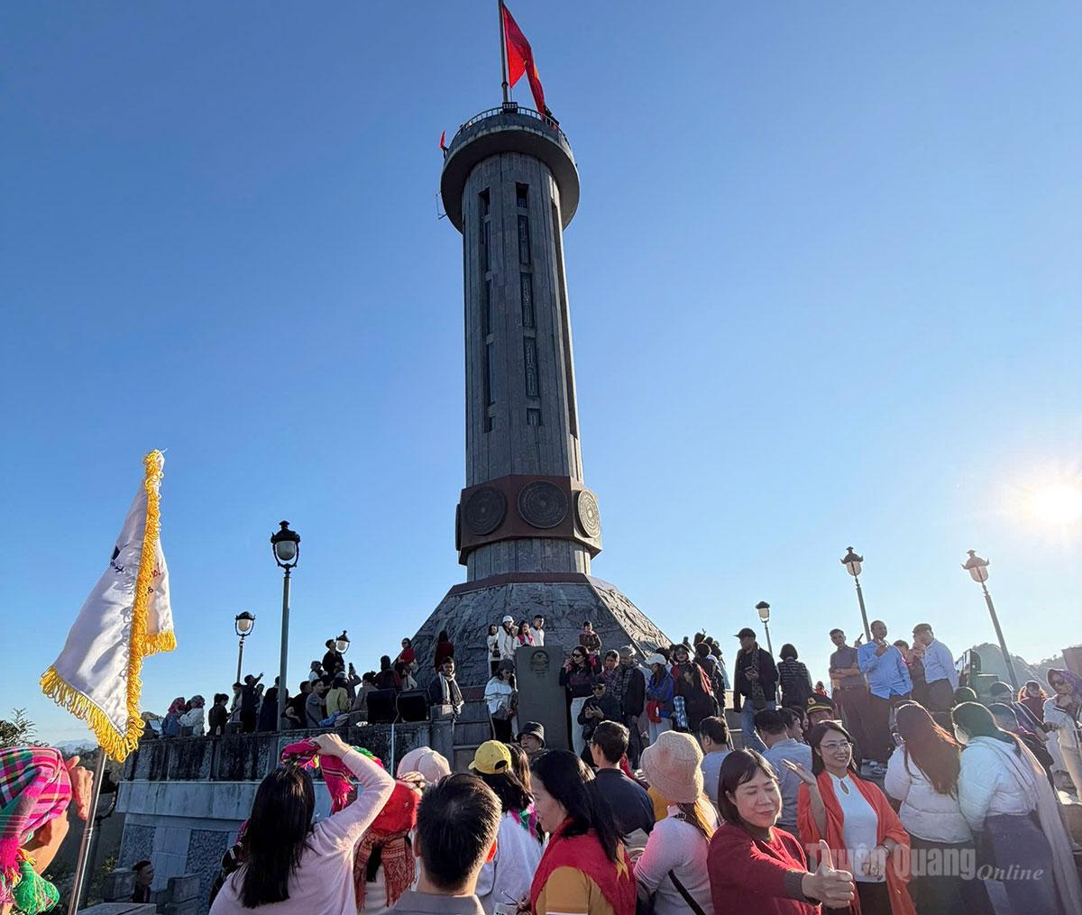 Du khách check-in tại cột cờ Quốc gia Lũng Cú.
