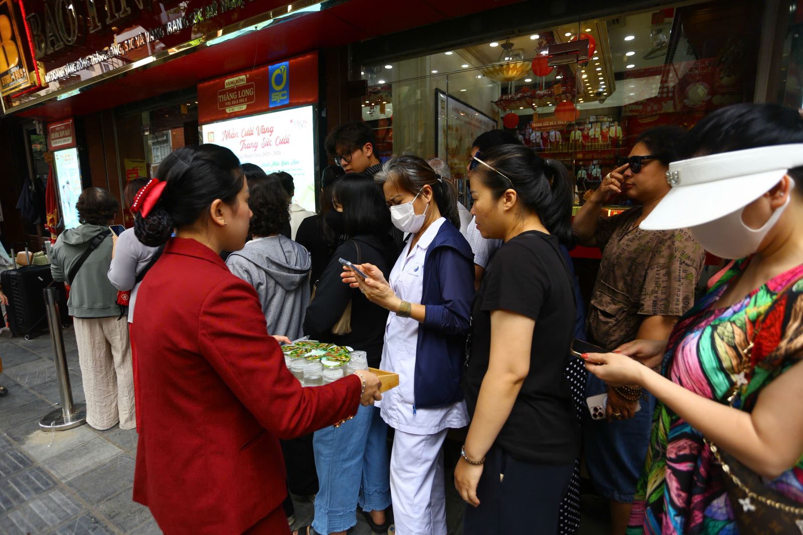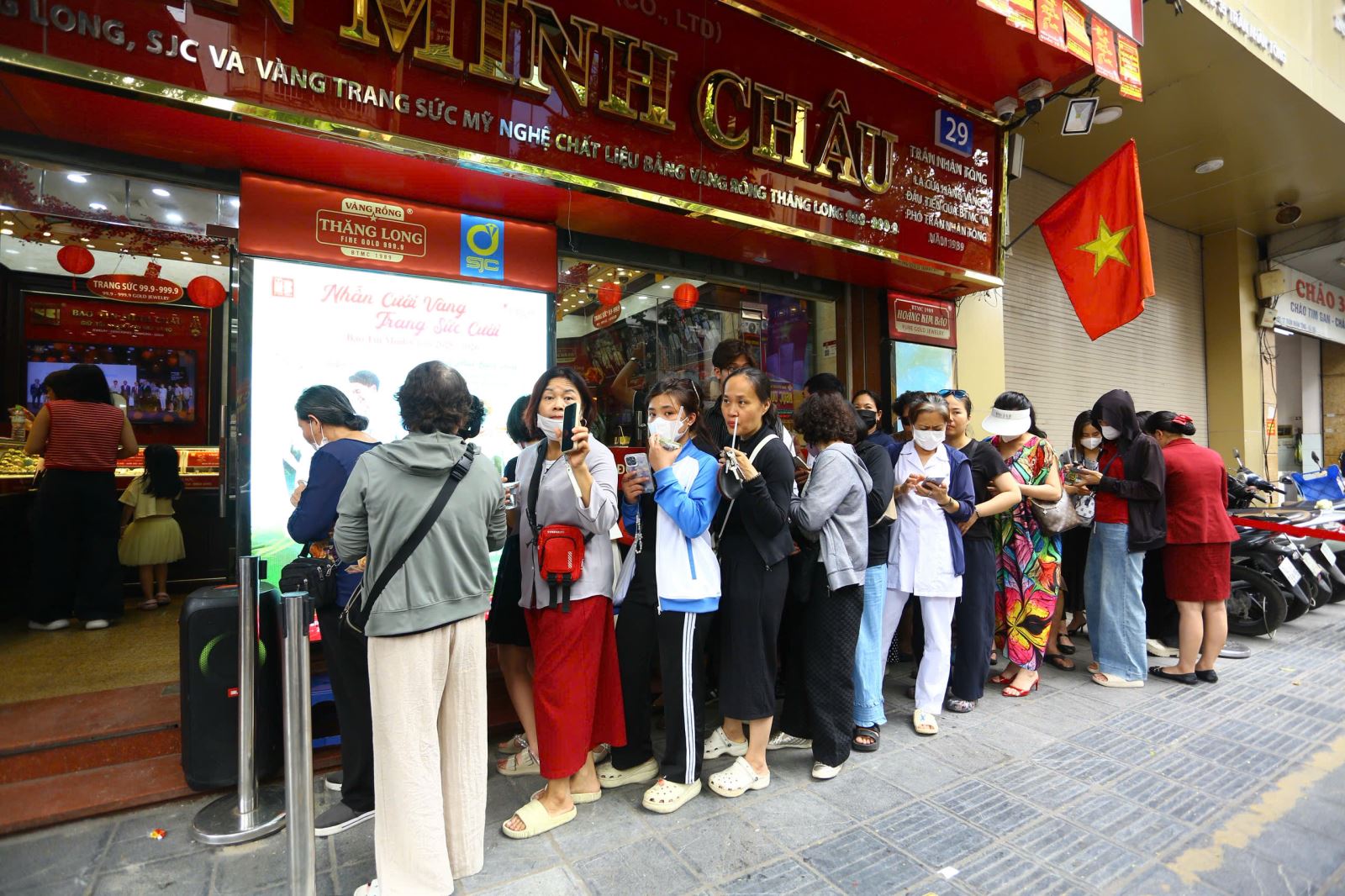 Từ trưa 26/3, rất nhiều khách hàng đã xếp hàng tại Bảo Tín Minh Châu số 29 Trần Nhân Tông, Hà Nội để mua vàng.
