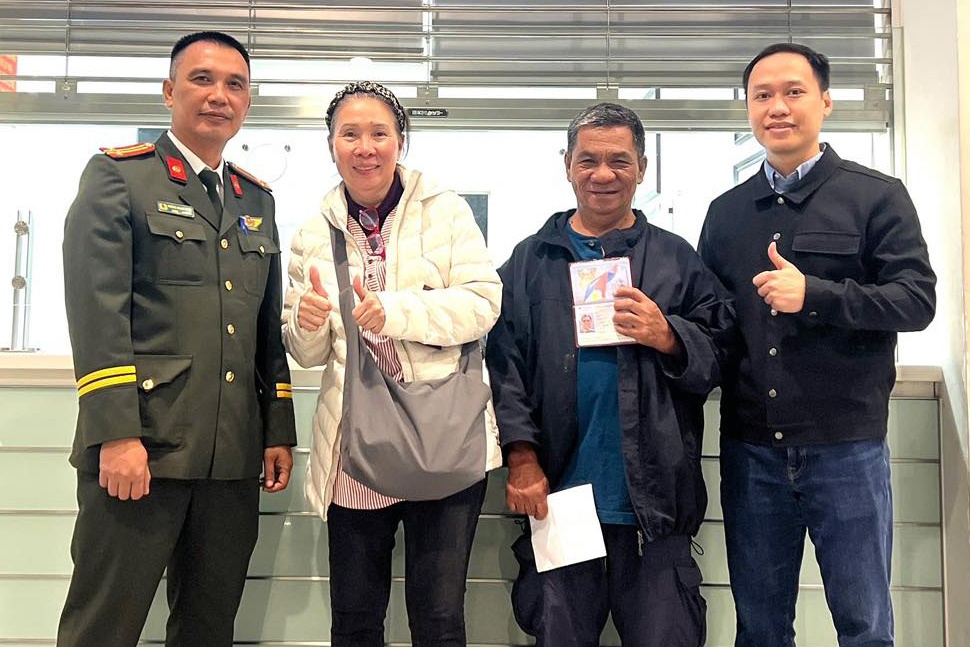 Lực lượng chức năng hướng dẫn vị khách Philippines cung cấp thông tin. Ảnh: Noibai International Airport.