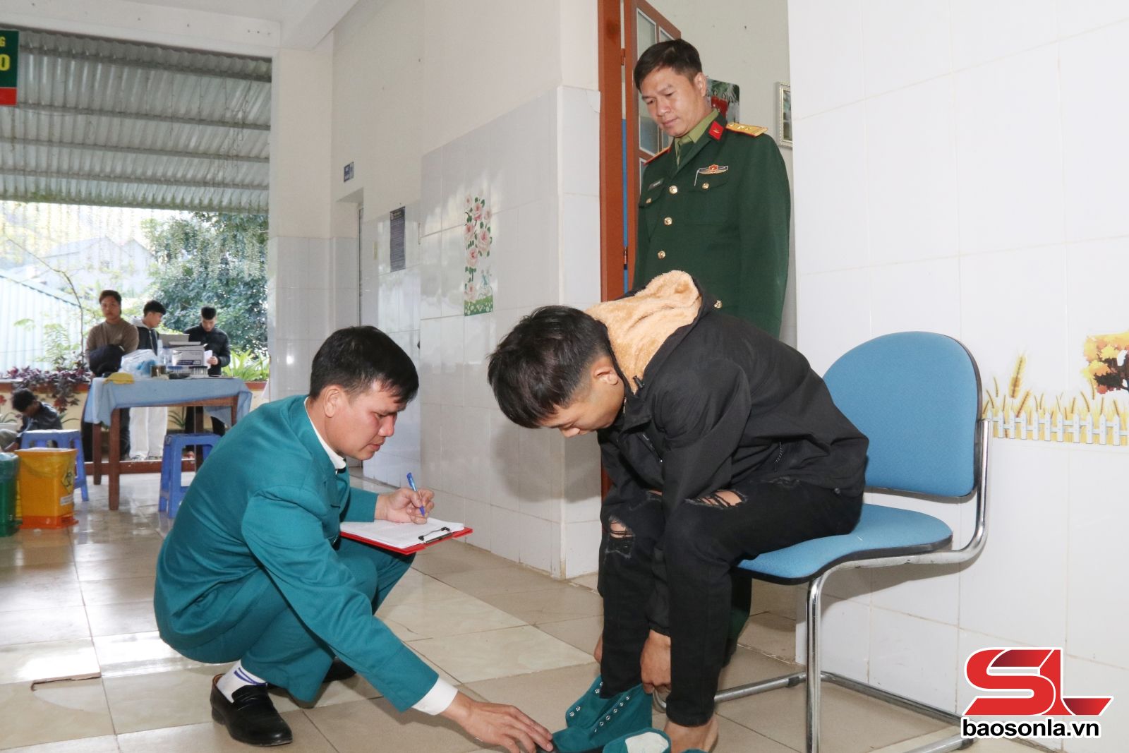 Bác sĩ Bệnh viện Đa khoa Thuận Châu khám tuyển nghĩa vụ quân sự.