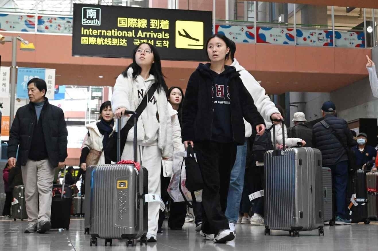 Du khách từ Trung Quốc đến sân bay quốc tế Kansai ở Osaka trong kỳ nghỉ Tết Nguyên đán năm ngoái. Ảnh: Arisa Moriyama.