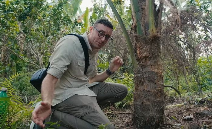 Du khách nước ngoài đến Bến Tre (cũ) trải nghiệm ẩm thực, đặc biệt là món đuông dừa. (Ảnh chụp màn hình từ kênh YouTube Andrew Fraser)