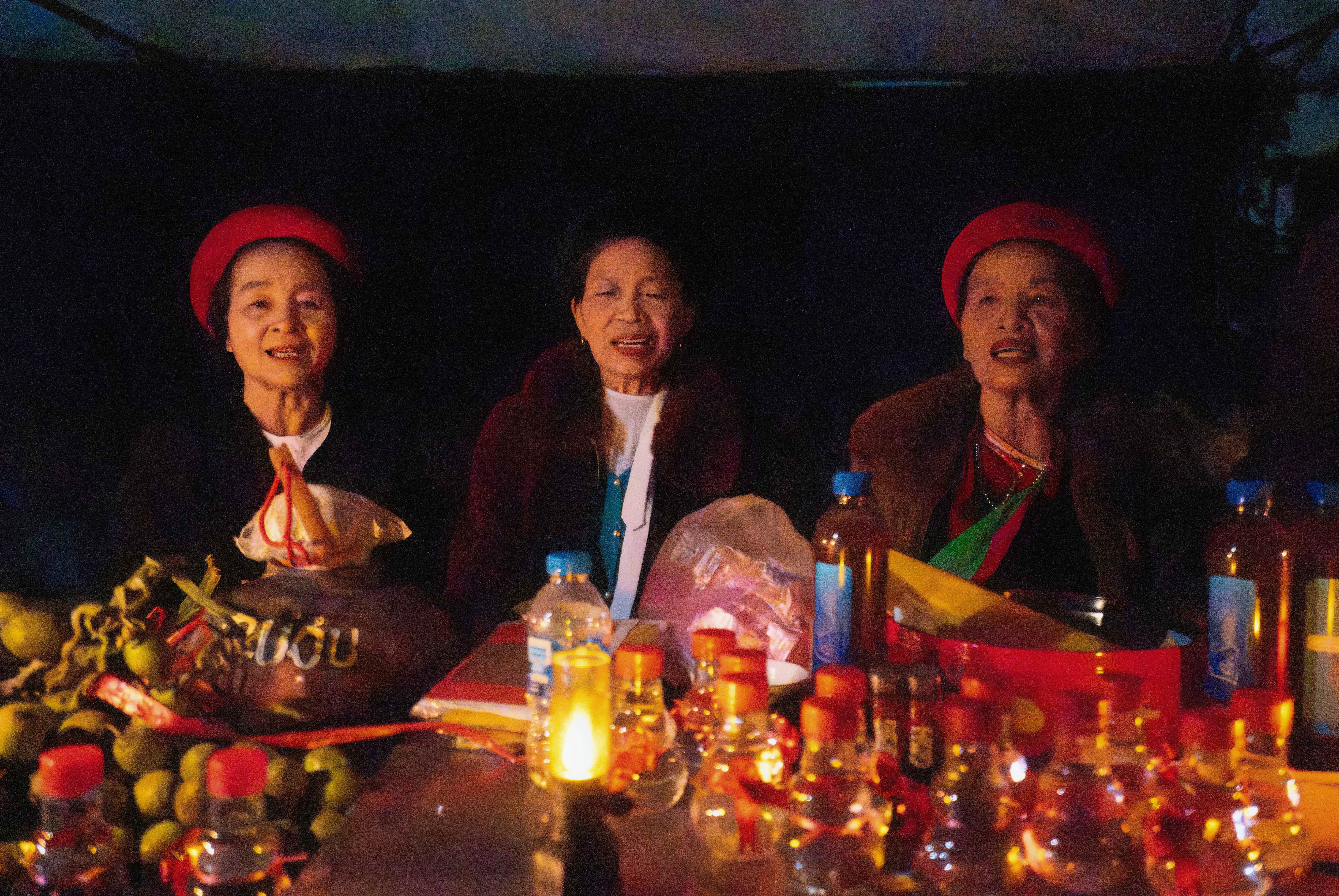 Phiên chợ khoác lên mình diện mạo tái hiện “lối vào cửa âm phủ” đầy bí ẩn. Ánh sáng mờ ảo, cách bài trí đậm màu sắc tâm linh khiến không gian trở nên nửa hư nửa thực, góp phần làm nổi bật nét độc đáo của phiên chợ đầu xuân.