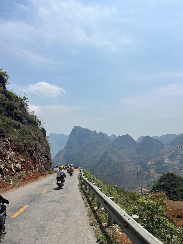 Chưa bao giờ cô cảm thấy bình yên như lúc ngồi phía sau chiếc xe tay ga của hướng dẫn viên bản địa, len lỏi giữa những dãy núi hùng vĩ trên hành trình Hà Giang Loop. Các nhóm du khách nước ngoài xem đây là cung đường "nguy hiểm bậc nhất" Việt Nam, theo National Geographic.