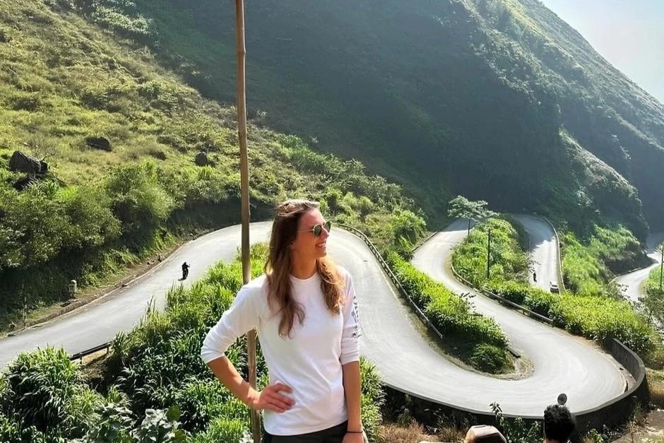 Du khách nước ngoài check-in Dốc Thẩm Mã - điểm đến nổi tiếng ở Hà Giang. Ảnh: @happy_ana_veres.
