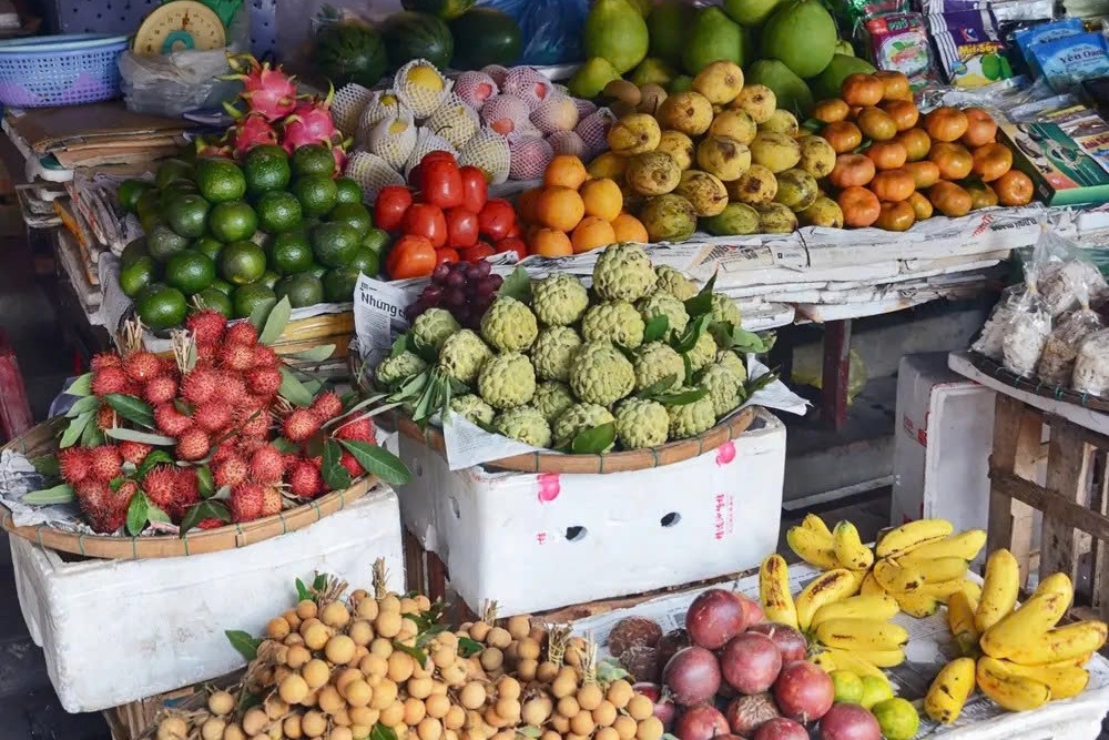 Một sạp bán hoa quả tại chợ truyền thống Việt Nam. Ảnh: @alxpin.