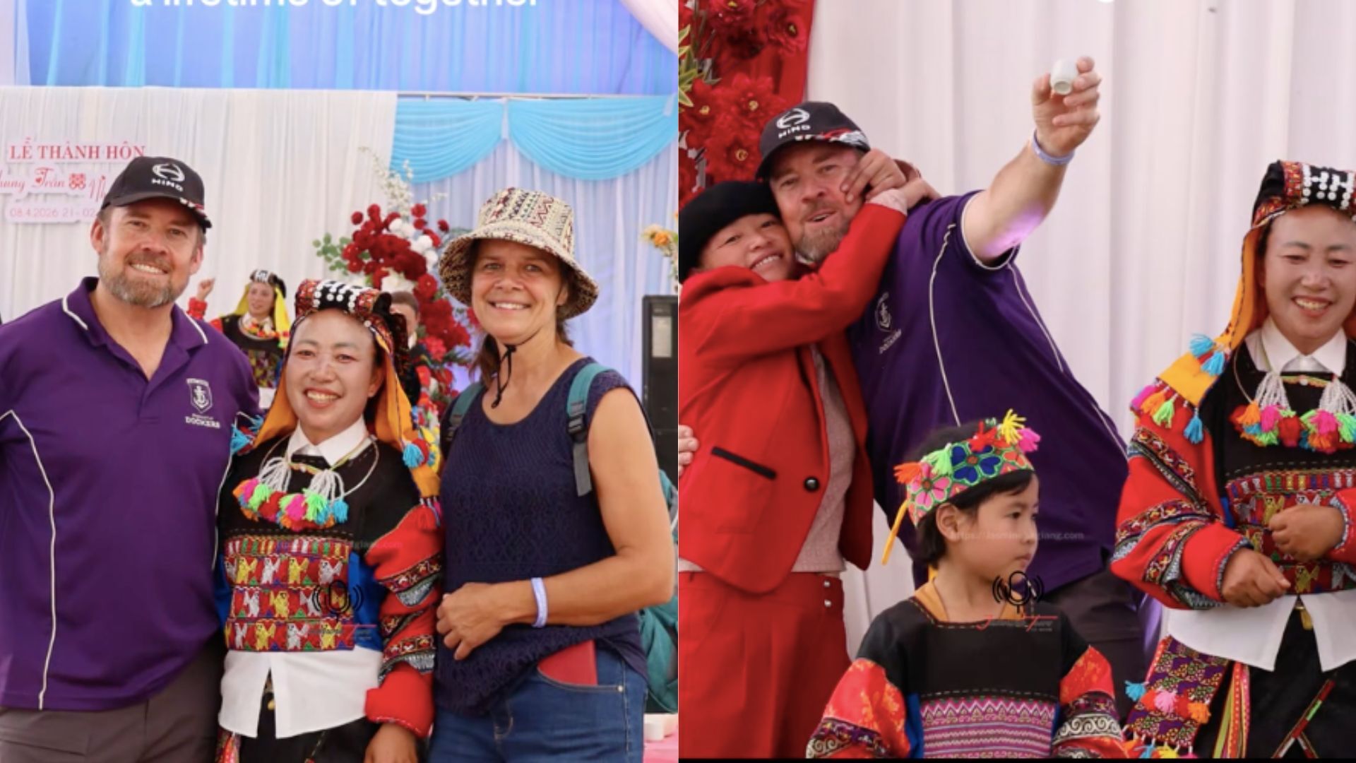 Đang trên đường tham quan Hà Giang, hai du khách nước ngoài lạc vào một đám cưới. Chủ tiệc hiếu khách mời họ cùng vào chung vui. Những vị khách Tây hào hứng nâng ly rượu, lên hẳn sân khấu nhảy nhiệt tình theo nhạc, để lại nhiều tiếng cười. Clip ghi lại cảnh này sau khi được đăng tải nhanh chóng thu hút hàng triệu lượt xem và tương tác.