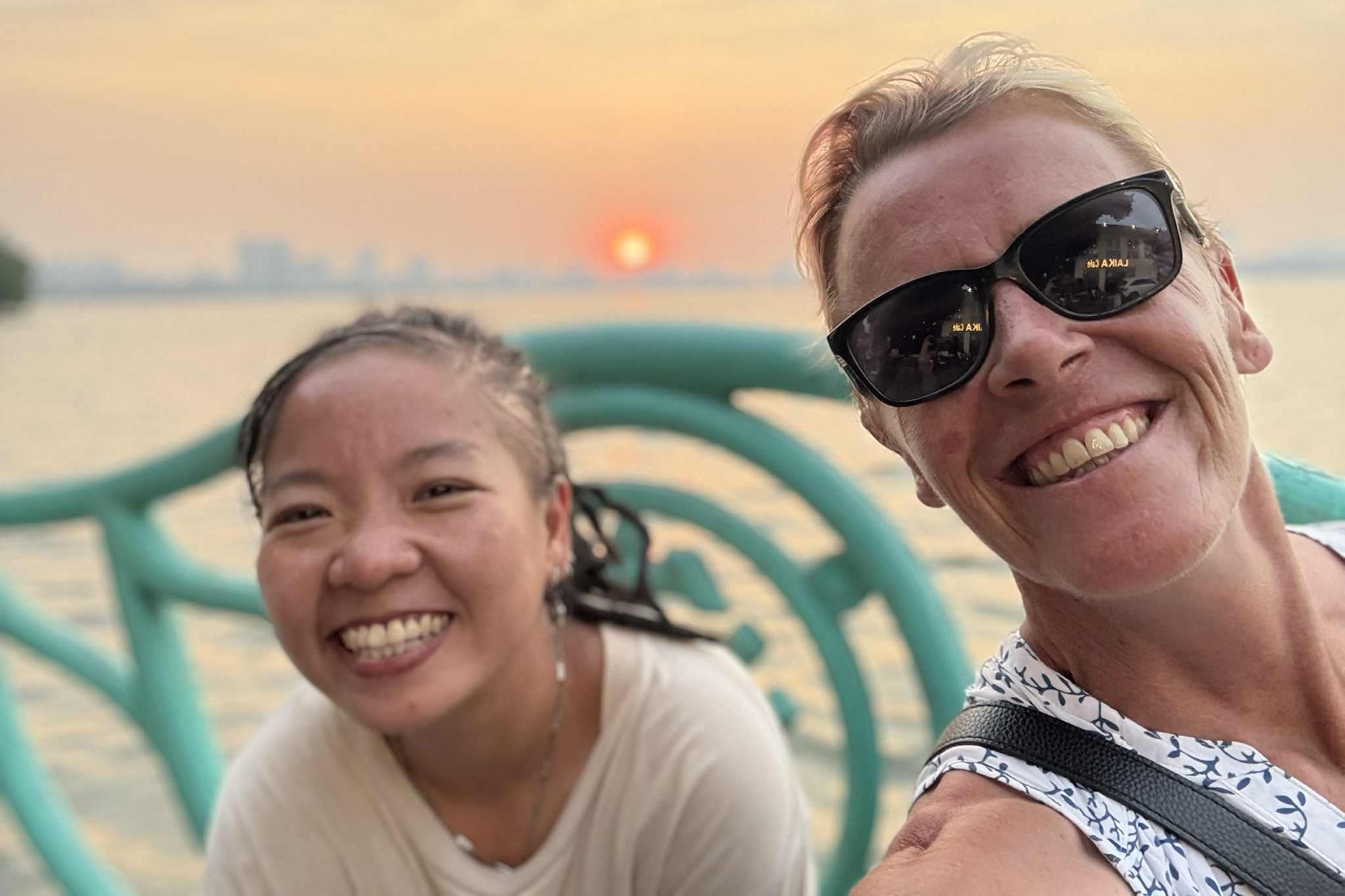 Hồng Minh dẫn khách Đức đi ngắm hoàng hôn hồ Tây, chiều 5/10.