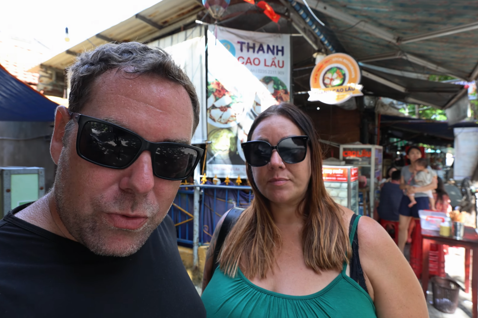 Cặp đôi du khách Canada trong hành trình trải nghiệm ẩm thực Hội An. Ảnh: The Dufresnes