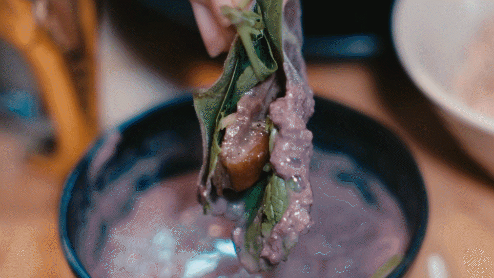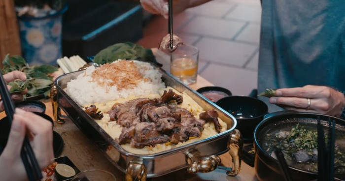 Thịt dúi chấm mắm tôm. (Ảnh từ YouTube Andrew Fraser)