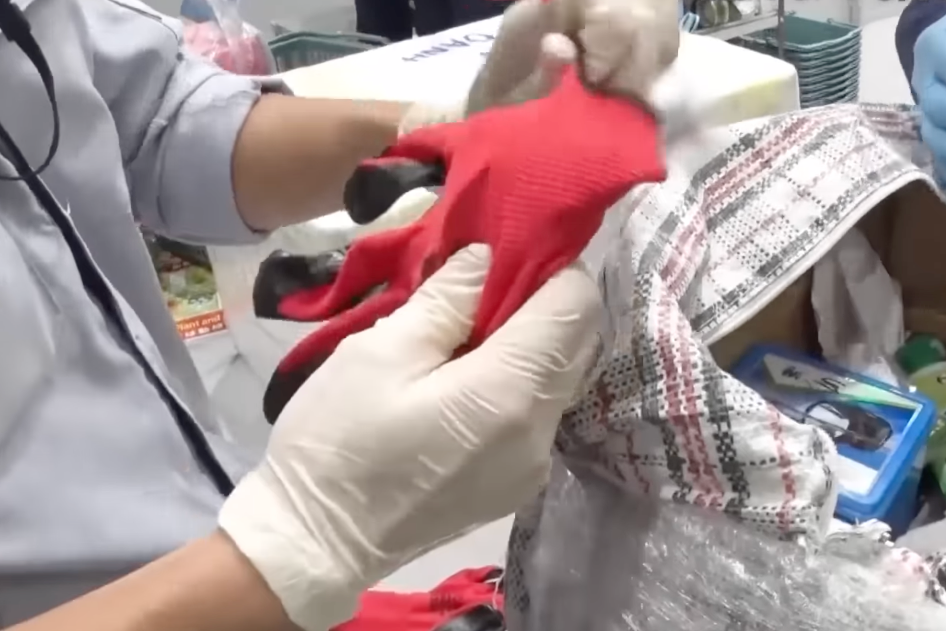 Những gói hạt giống rau được giấu tinh vi bên trong găng tay để trong hành lý của du khách Việt. Ảnh: FNN.