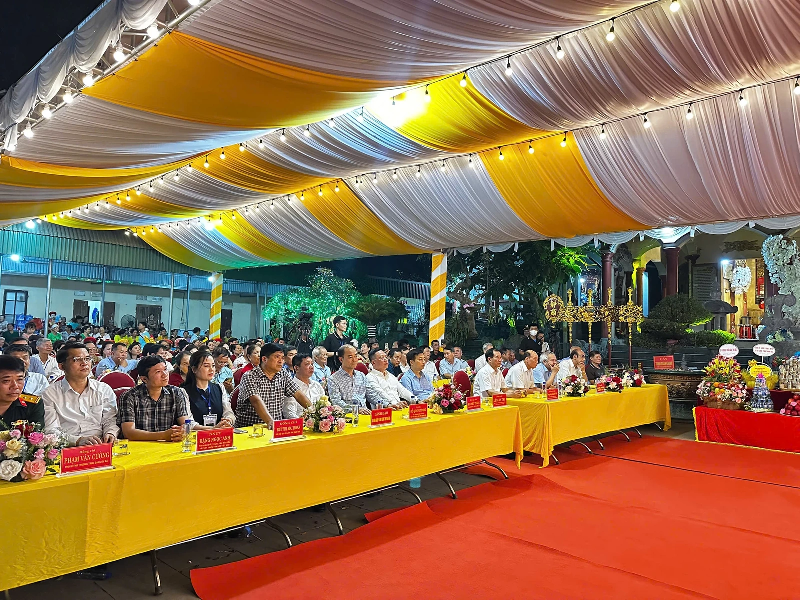 Trong đêm khai hội, các nghi thức truyền thống như đánh trống khai hội, dâng hương, tế lễ được tổ chức trang trọng, xen kẽ với chương trình văn nghệ đặc sắc, tái hiện đời sống văn hóa dân gian, tạo không khí rộn ràng, phấn khởi.