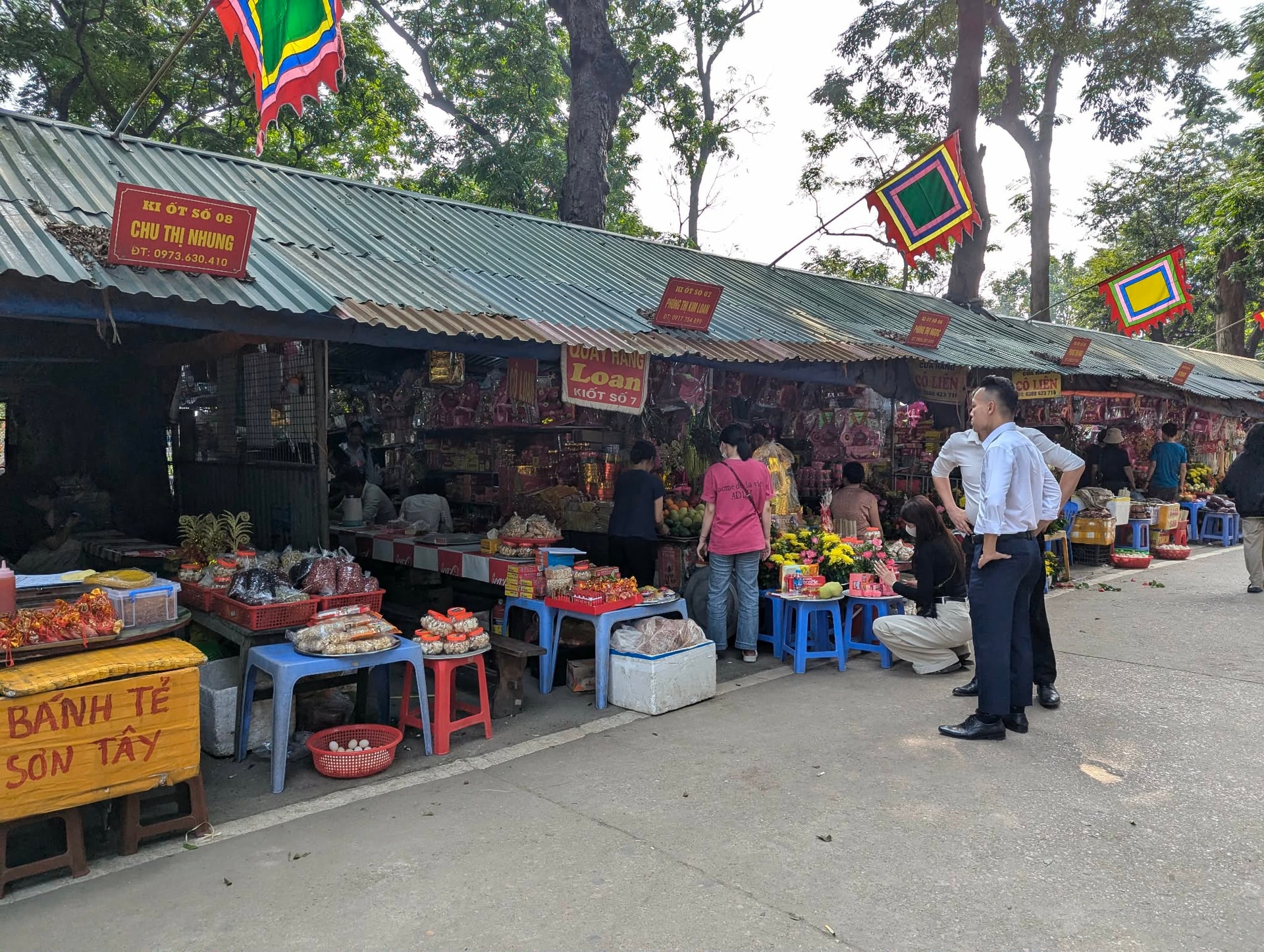 Gian hàng bày bán sản vật, đặc sản xứ Đoài tại Lễ hội đền Và 2026, thu hút nhiều du khách tham quan. Ảnh: Nguyễn Quý