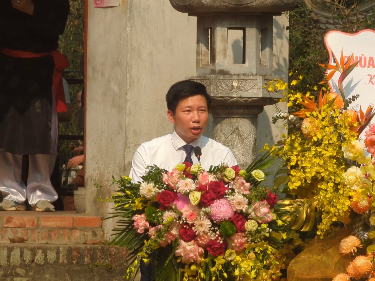 Phó Chủ tịch UBND phường Sơn Tây Hà Ngọc Quân, Trưởng ban Tổ chức Lễ hội đền Và 2026 phát biểu khai mạc buổi lễ. Ảnh: Nguyễn Quý
