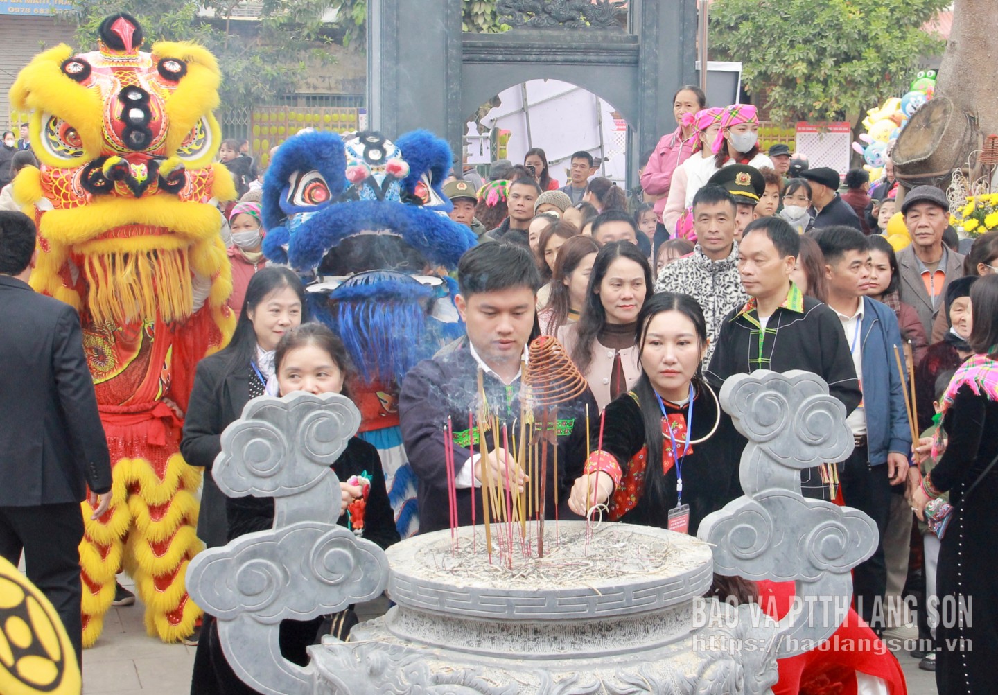 Các đại biểu cùng đông đảo Nhân dân dâng hương tại đền Vua Lê