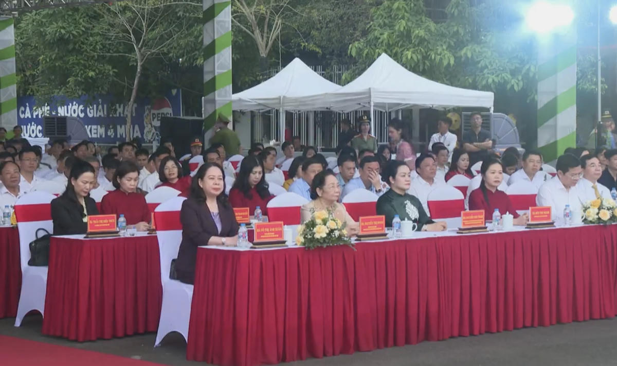 Phó Chủ tịch nước Võ Thị Ánh Xuân cùng các đại biểu tham dự lễ hội Tây Thiên. Ảnh: TD.