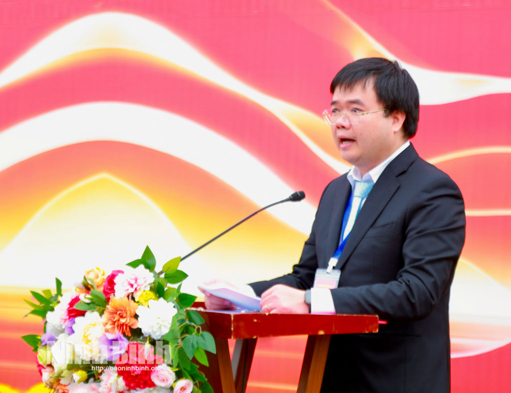 Lãnh đạo UBND phường Hoa Lư phát biểu tại lễ khai mạc.