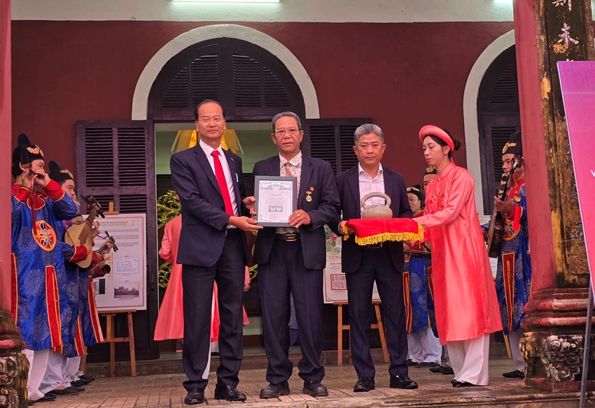 Nhà sưu tầm cổ vật TP. Huế Mai Bá Thiện trao tặng hiện vật tại chương trình