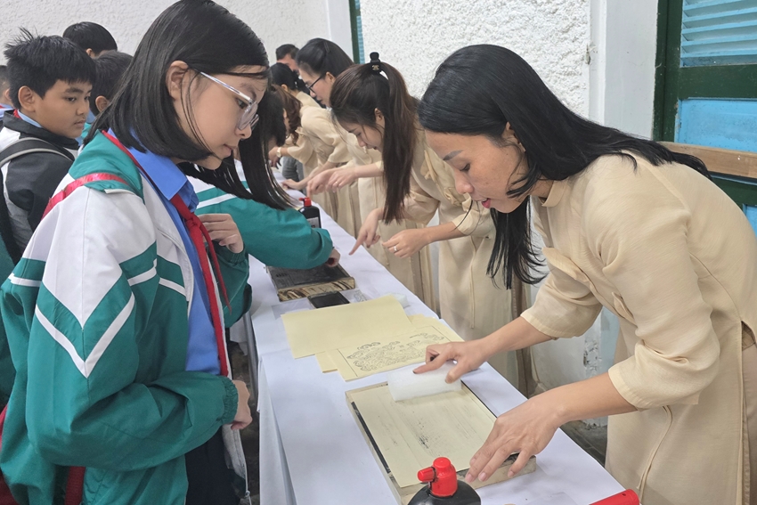 Hướng dẫn học sinh in mộc bản hoa văn Triều Nguyễn