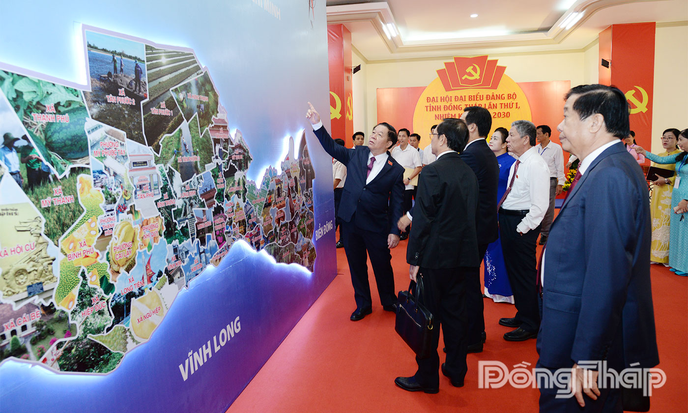 Đồng chí Nguyễn Trọng Nghĩa và lãnh đạo tỉnh tham quan triển lãm thành tựu kinh tế - xã hội của tỉnh Đồng Tháp.